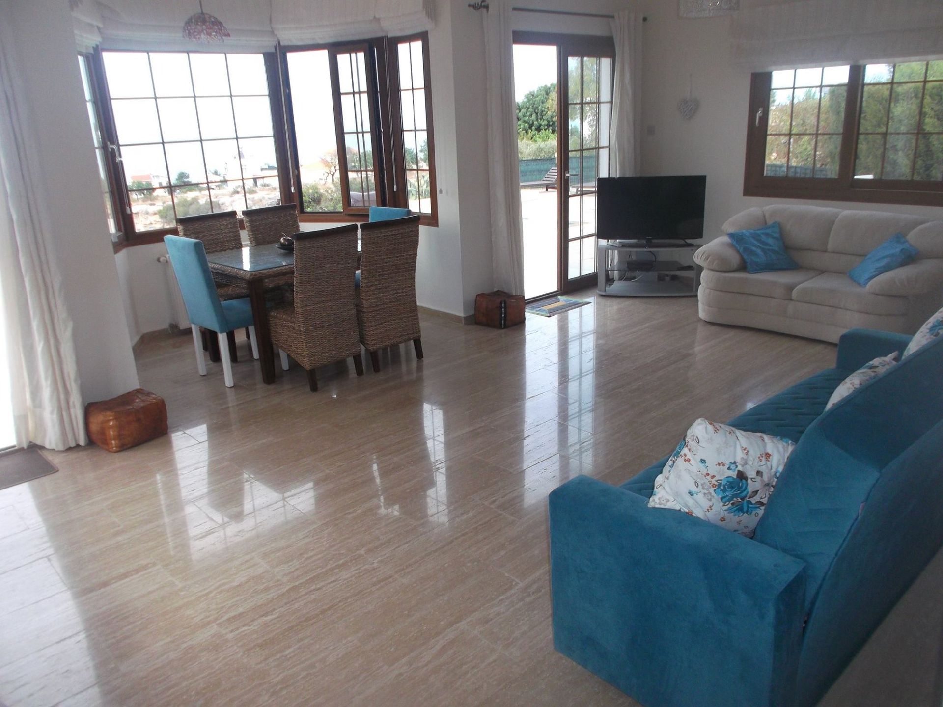 The road behind the villa is a no through road, so absolutely no passers by! A double gate welcomes you down into the paved drive, surrounded by various plants and palms, down some steps, past barbeque and you are pool side. The 4 x 8 metre pool is surrounded by patio containing more than enough sunbeds, parasols and an outside shower. Keep on walking towards the sea and you will arrive at the top of some stairs which take you down to the lower, terrace. This terrace is furnished with a table and 4 chairs, plus 3 gorgeous hanging, egg chairs, perfect area for reading, snoozing and watching the sunset early evening.
