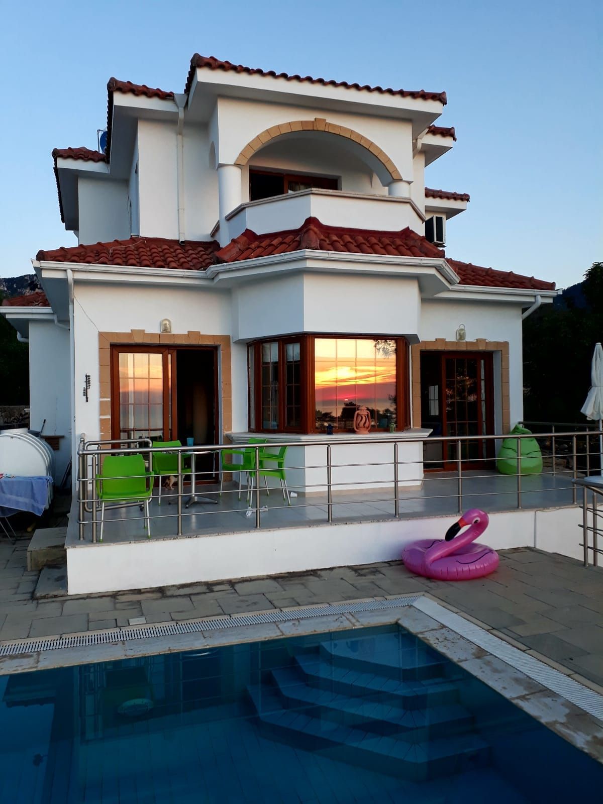 Villa DeloMoore sits at the top of the bustling village, Esentepe, Northern Cyprus. With some of the best views in the area. Uninterrupted sea view from the side of it's private swimming pool, which is not overlooked. To the side is the lovely ravine, the floor of which is covered with pine forest, walk round the front to see the backdrop of the Besemark mountains.
